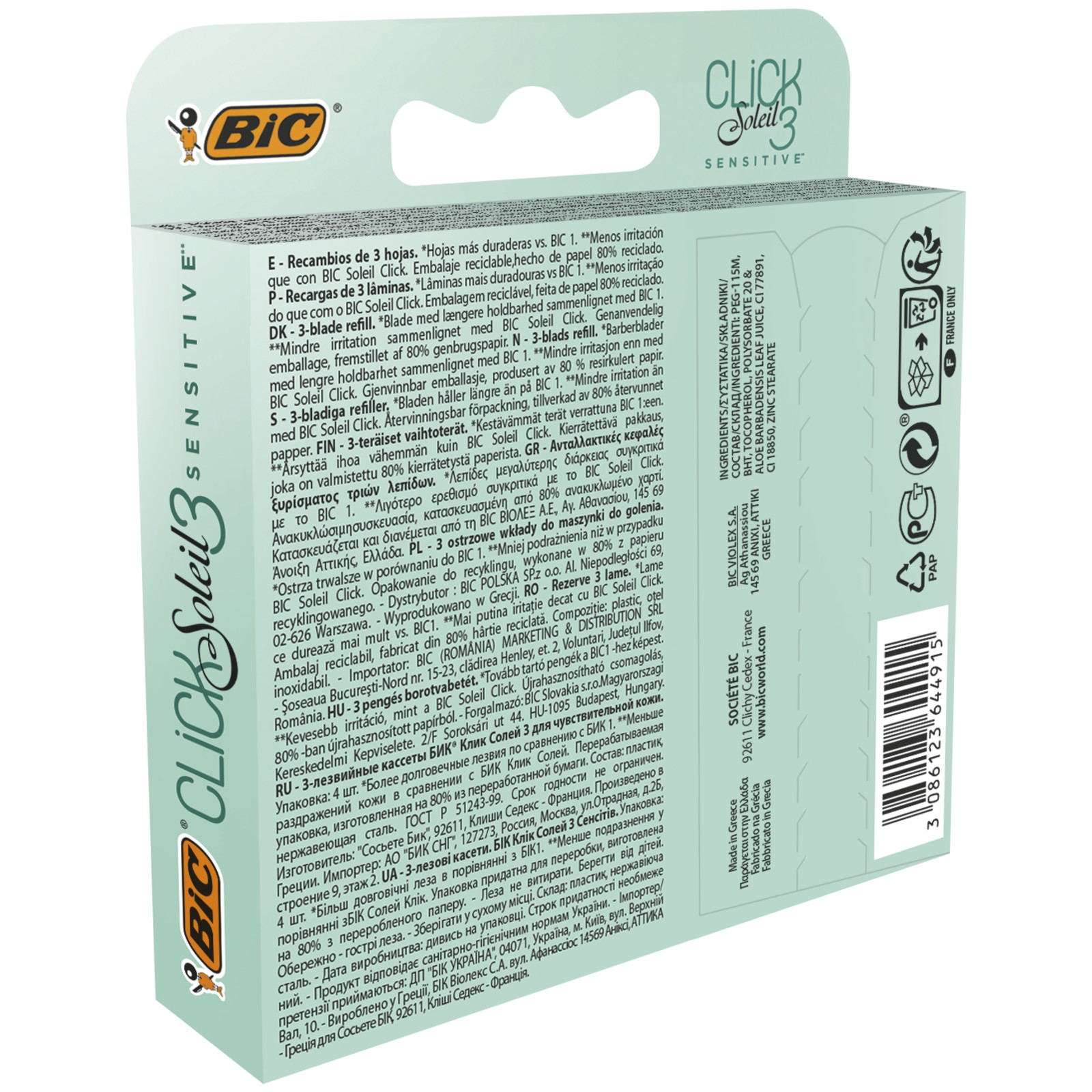 BIC Click 3 Soleil Sensitive, ανταλλακτικά γυναικείου ξυριστικού, 3 κινητές λεπίδες και λιπαντική ταινία – συσκευασία 4 τεμ