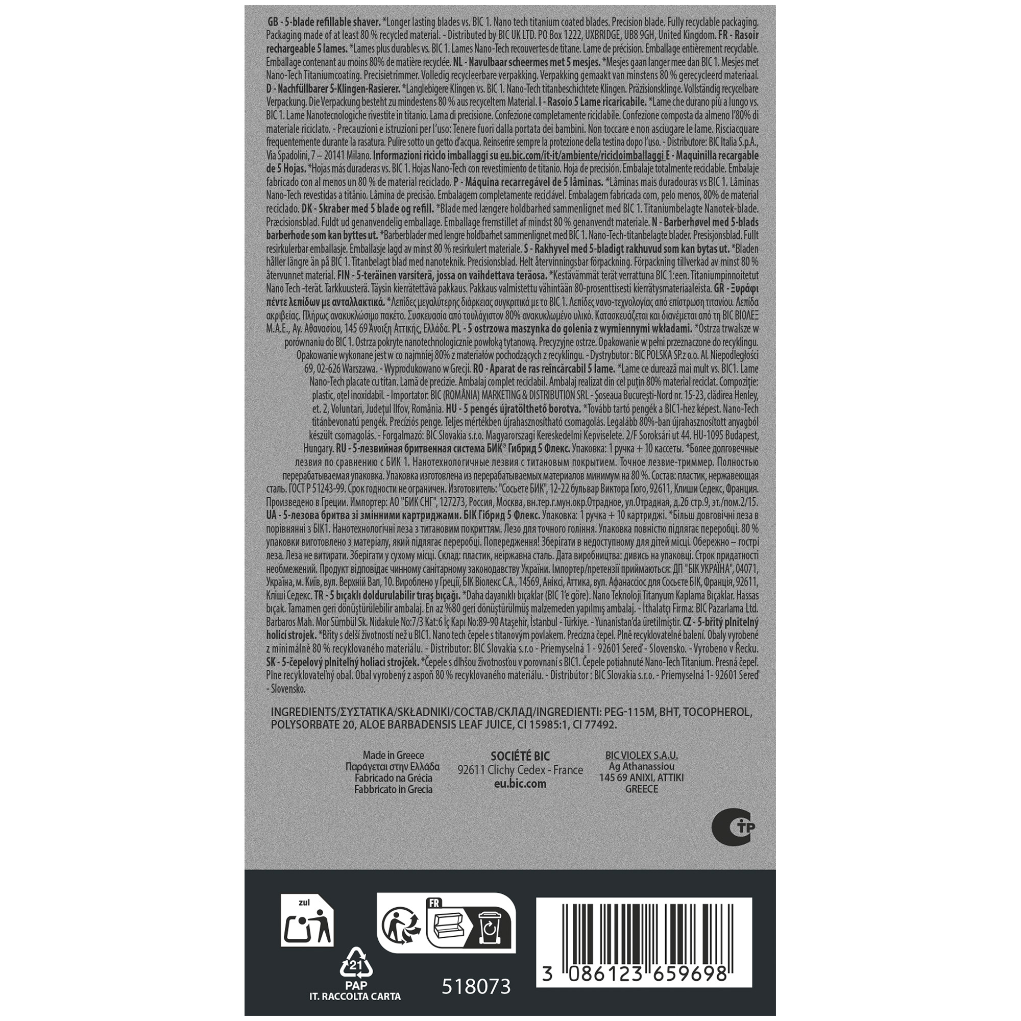 - Το απόλυτο ανδρικό ξυραφάκι BIC Hybrid 5 Flex με 10 ανταλλακτικές κεφαλές, 5 κινητών λεπίδων με επίστρωση τιτανίου για εξαιρετικά βαθύ ξύρισμα